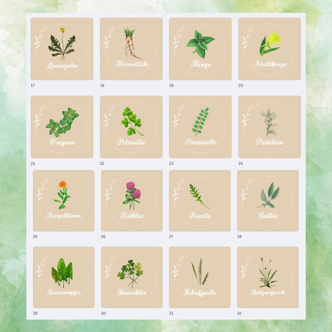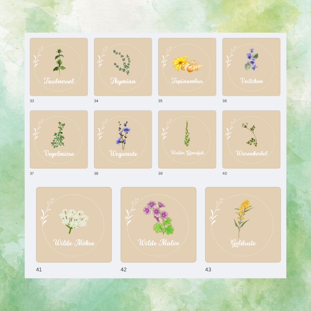 Lass Dich jeden Tag an die Schönheit und Vielfalt der Essbaren Wildnis erinnern mit diesen exklusiven Wildkräutermagneten für Dein Zuhause. Du kannst aus 43 Motiven sechs Deiner Lieblingswildkräuter auswählen. Jedes Kraut wird in klaren und ansprechenden Illustrationen dargestellt.